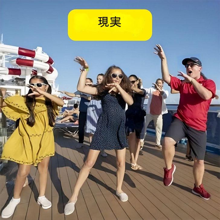 しかし、現実のクルーズは残念ながら映画のようではありません。ツアーはさまざまな年齢層を対象としており、それは多くのスペースを占有するこのような活動を計画することを意味します。ですから、あなたが大切な人と持つはずの静かな夕暮れの瞬間はどこにもありませんよね?