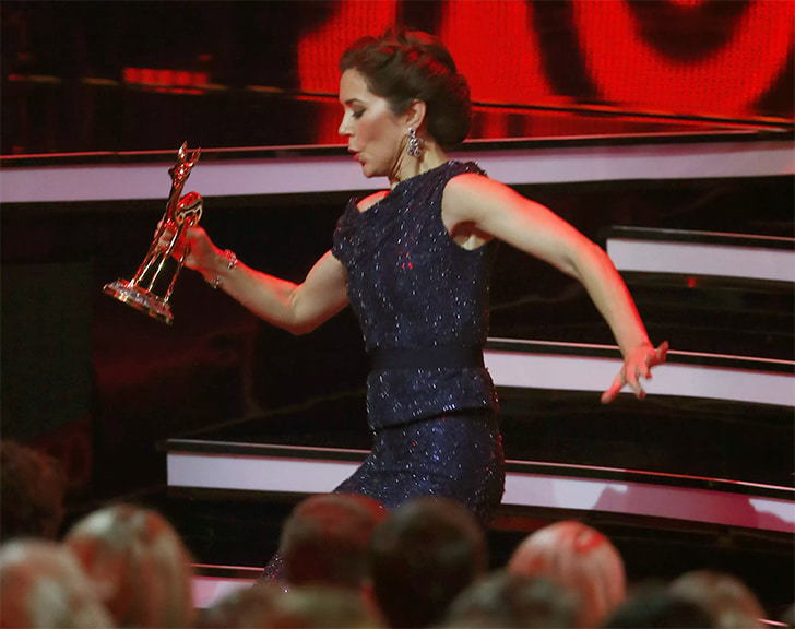 Yet as she returned to her seat after accepting the award, she briefly lost her footing. With a quick recovery, she steadied herself, laughed lightly, and flashed a warm smile that kept the evening as elegant as ever. The tiny misstep quickly made headlines, not for the fall itself, but for how she handled it.