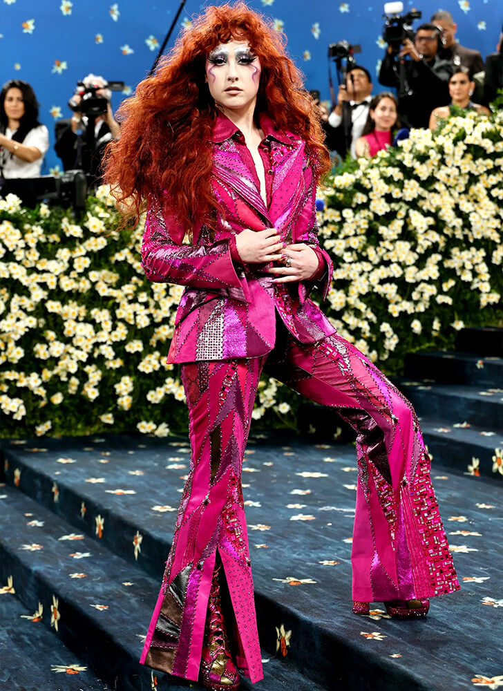 Chappell Roan totally wowed at the 2025 Met Gala with a bold, vibrant pink patchwork look that screamed disco glam. The outfit, designed by Oscar-winning costume designer Paul Tazewell, who’s famous for his work on “Wicked,” was a dazzling hot-pink suit covered in sequins and feathered trims.