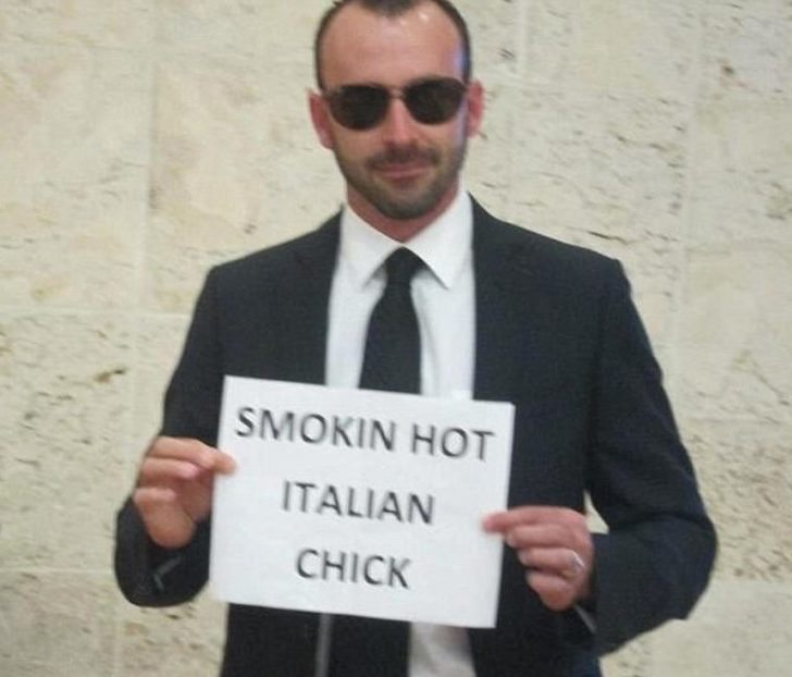 The message leaves zero room for confusion and just the right amount of swagger. What makes it perfect is his calm, no-nonsense expression. He’s not joking, he’s not smiling, he’s playing the part of the professionally stoic bodyguard. His wife will definitely be getting a welcome that’ll be hard to forget!