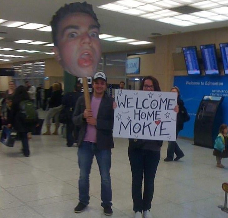 Travelers passing by probably wondered if a celebrity had arrived or if this was some kind of elaborate prank that had gone wonderfully right. There’s no mistaking who they came for, because nothing says “we missed you” quite like your own face haunting the arrivals gate.