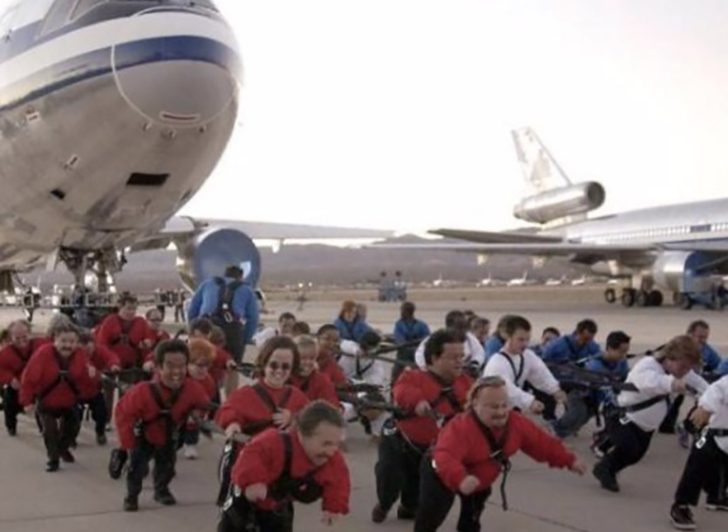 This photo is the result of a team-building retreat that went completely off-script. Pulling an entire airplane is the kind of challenge that sounds like a joke until someone says, “Let’s film it,” because people will do almost anything for bragging rights—or television ratings.