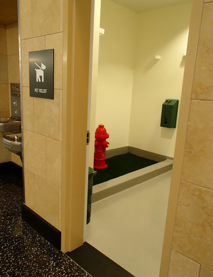 Airports have officially thought of everything, even the furry frequent flyers. This little corner is the ultimate convenience stop for dogs on the go, complete with fake turf and a bright red hydrant for that authentic outdoor touch. The attention to detail is impressive, and you can almost imagine a pup proudly trotting in like it’s their personal VIP lounge.