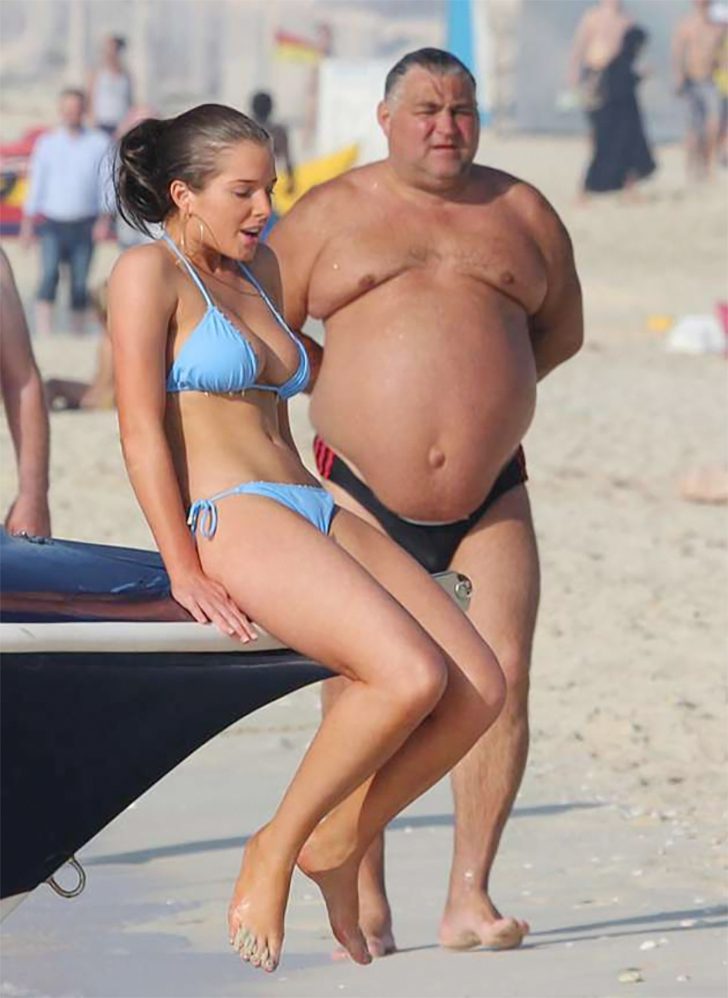 Helen Flanagan, known for her time on “Coronation Street,” is just trying to enjoy a peaceful moment in Dubai, but the universe has other plans. She looks every bit the picture-perfect vacationer in this shot. Then, in walks the unintentional scene-stealer—sporting confidence, a speedo, and a belly that refuses to be ignored.
