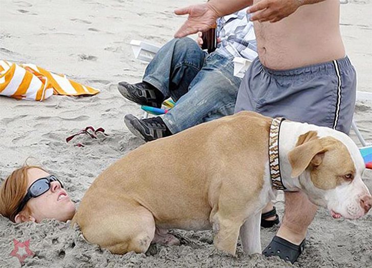 Burying yourself in the sand might seem like a fun beach activity—until an unsuspecting dog decides this is the perfect spot for a break. This beachgoer is living out the worst-case scenario as their decision to get half-buried in the sand has taken an unexpected and uncomfortable turn.